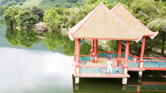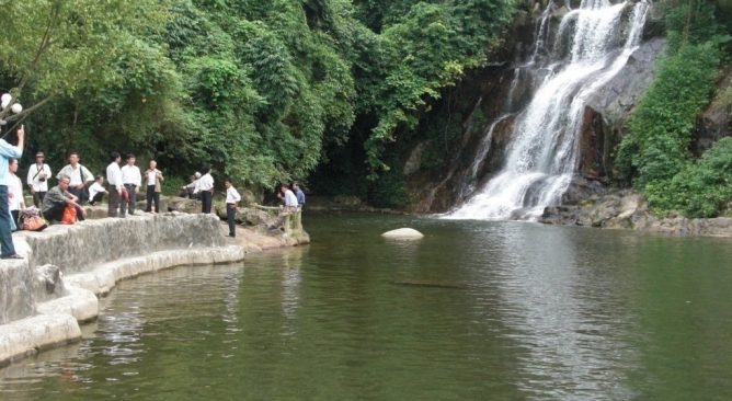 09h00: Đến khu du lịch, đoàn đi thăm quan Cổng Ngũ phúc, cầu Thuận thiên, khách sạn Viên Sơn, Thác Nhị Long, Thác Thung Lao , khám phá nét nguyên sơ của đồi Lồng Bàn, chiêm ngưỡng vẻ đẹp huyền diệu của lầu Liên Hoa, lầu Uyên Ương… Du khách có thể tắm thác, leo núi, vui đùa với đàn khỉ đã được thuần dưỡng hay tìm cảm giác mạnh trong công viên với khu trượt nước 9 làn hoặc tham gia các hoạt động thể dục thể thao ngoài trời như bóng đá, bóng chuyền, cầu lông, tennis.